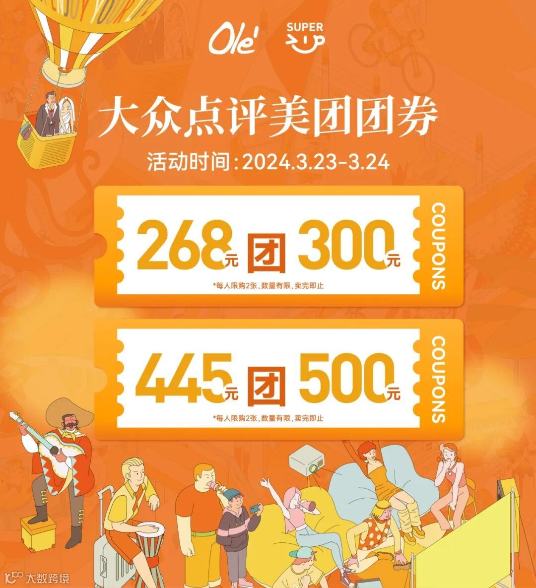 ②Olé—268元团300元券团券规则:该券每人仅限团购2张,售完即止,每单限用1张;