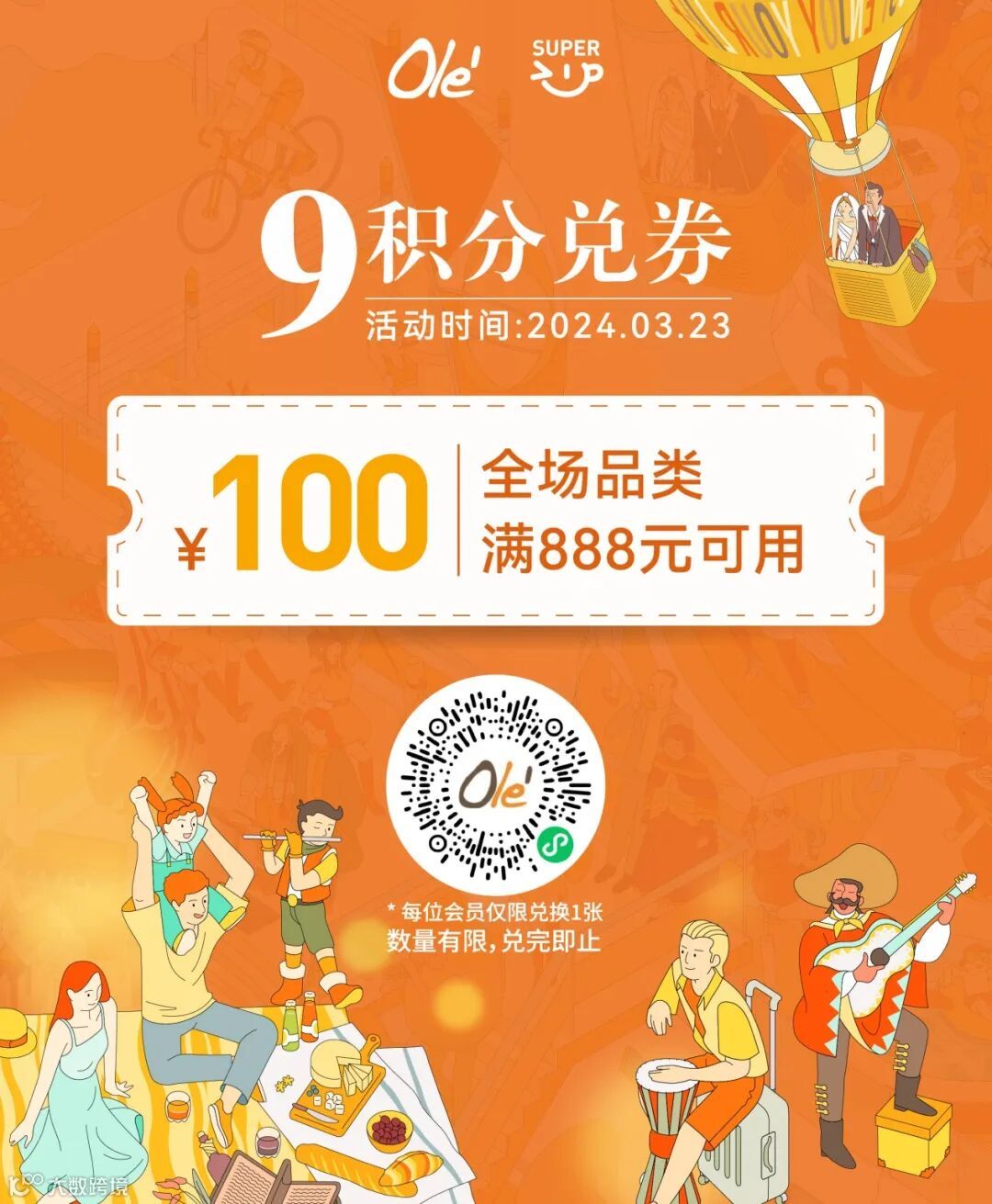 ✔ 3.23 9积分兑全场888元减100元券
