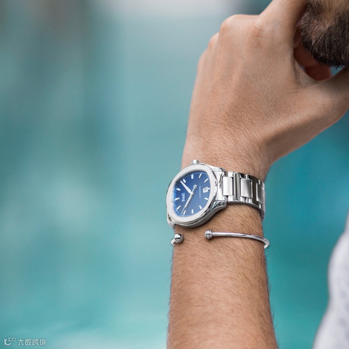 36毫米精钢表壳,搭配垂直渐变蓝色表盘,