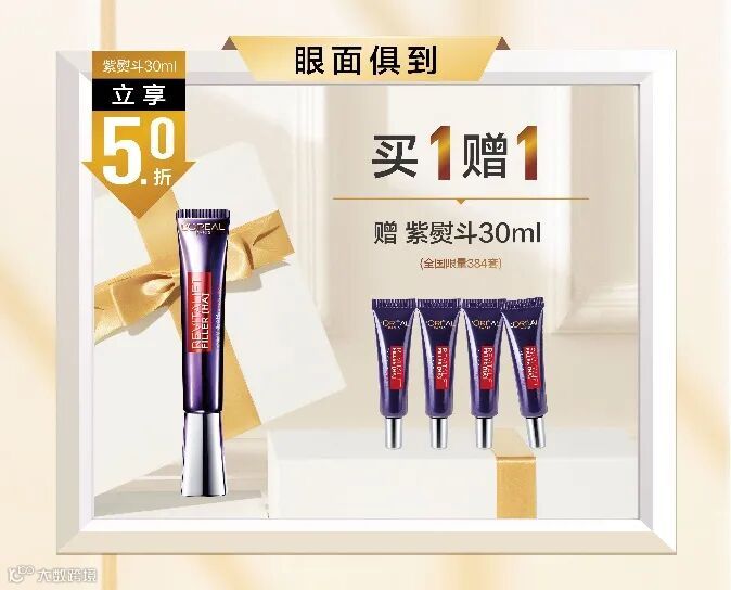购欧莱雅复颜玻尿酸水光充盈全脸淡纹眼霜 30ML