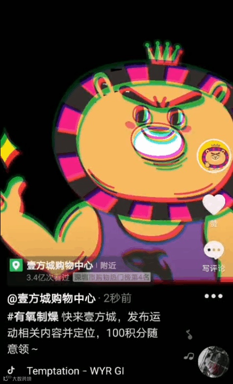 4月10日-4月24日在抖音平台发布运动相关视频,并带话题 #有氧制燥#,定位壹方城购物中心,即可前往L1客服台登记后领取壹方城会员100积分。