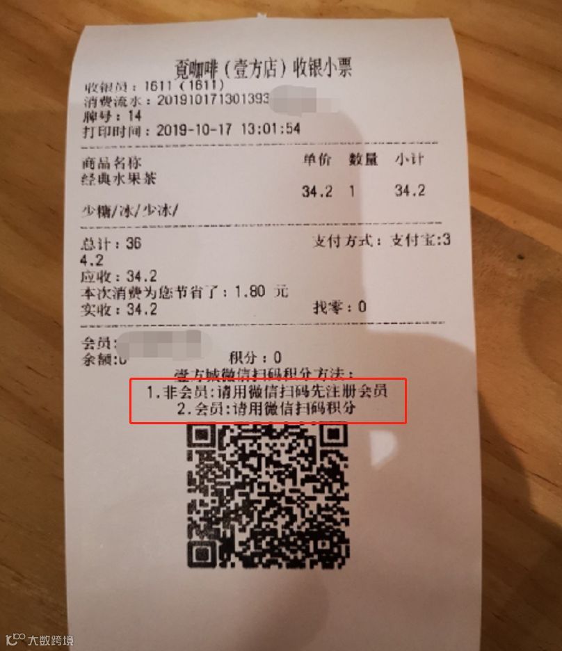 若消费小票下方二维码前有【壹方城微信扫码积分】提示,顾客可在壹方城公众号自行扫码积分;
