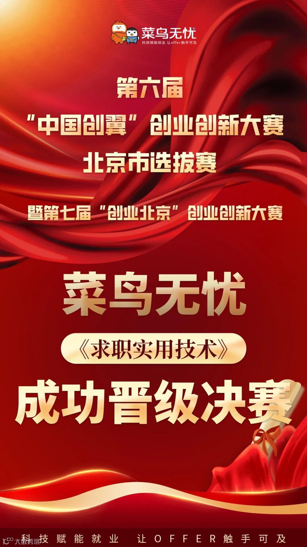 近日,由人力资源和社会保障部指导,北京市人力资源和社会保障局、昌平区人民政府、北京市发展和改革委员会等13家单位共同主办的第六届“中国创翼”创业创新大赛北京市选拔赛暨第七届“创业北京”创业创新大赛在北京圆满落下帷幕。在这场汇聚了全国精英创业项目的盛大赛事中,菜鸟无忧凭借“求职实用技术”项目在大赛中脱颖而出,成功晋级决赛阶段。