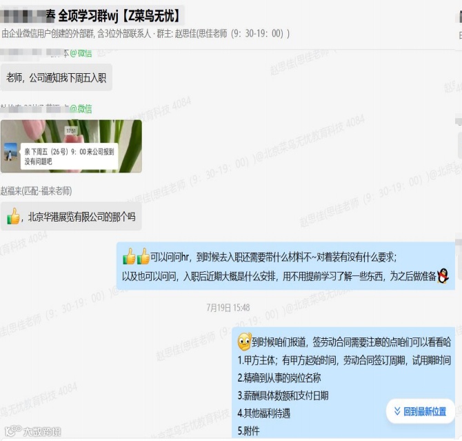 终于,在老师们的精心辅导和杜同学的不懈努力下,她收到了中展集团北京华港展览有限公司项目经理岗位的面试通知。这一刻,所有的努力与等待都化为了无尽的喜悦与激动。面试前,她反复练习自我介绍、模拟面试场景,力求每一个细节都尽善尽美。最终,凭借扎实的专业功底、出色的沟通能力和良好的个人形象,她成功脱颖而出,赢得了这份令人羡慕的工作机会。