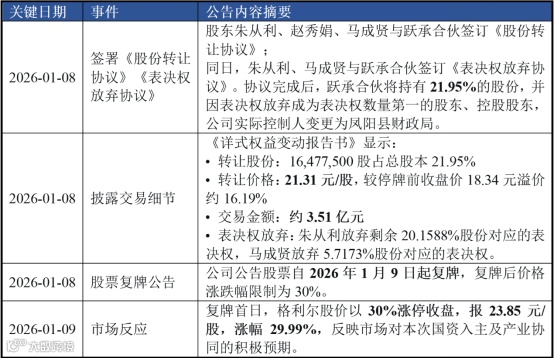 北交所上市企业格利尔(920641)近日公告,跃承合伙拟通过协议转让受让朱从利等三人所持21.9481%股份,总价3.51亿元,构成并购。付款方式为设立共管账户,先付全款,过户后释放90%,董事会改组后释放剩余10%,。交易特点为分两阶段转让+表决权放弃,朱从利、马成贤放弃部分表决权。交易后,公司实际控制人由朱从利、赵秀娟变更为凤阳县财政局,无主营业务调整。本次交易不构成关联交易,不构成重大重组。这是地方国有资本战略入股民企的案例,通过表决权安排快速巩固控制权,既为格利尔引入资源支持,也体现展示了地方国资如何从“政策招商”转向“资本引智”,实现与创新型企业的双向奔赴。