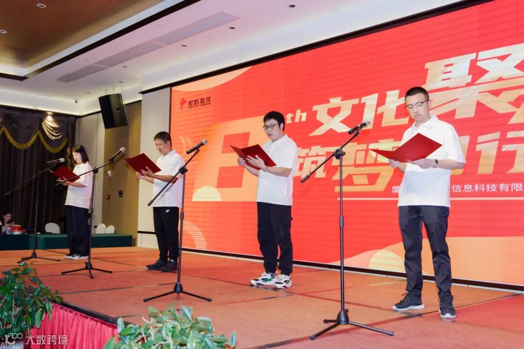 节奏欢快的快板结合企业文化,风控部带来了一场异彩纷呈的表演;法务部幽默诙谐的情景剧,笑中带泪彰显企业温度;一封来自12年后的盈信生活快讯诉说着员工对象屿盈信未来的美好展望;“招财组合”别具一格的歌舞改编、综合部精心编排的三句半、异地直营声情并茂的朗诵、客管租后深情演绎的歌曲合唱,一个又一个节目将本次汇演推向高潮。每一个节目都展现了象屿盈信人的多才多艺与无限创意,现场掌声雷动,气氛热烈非凡。