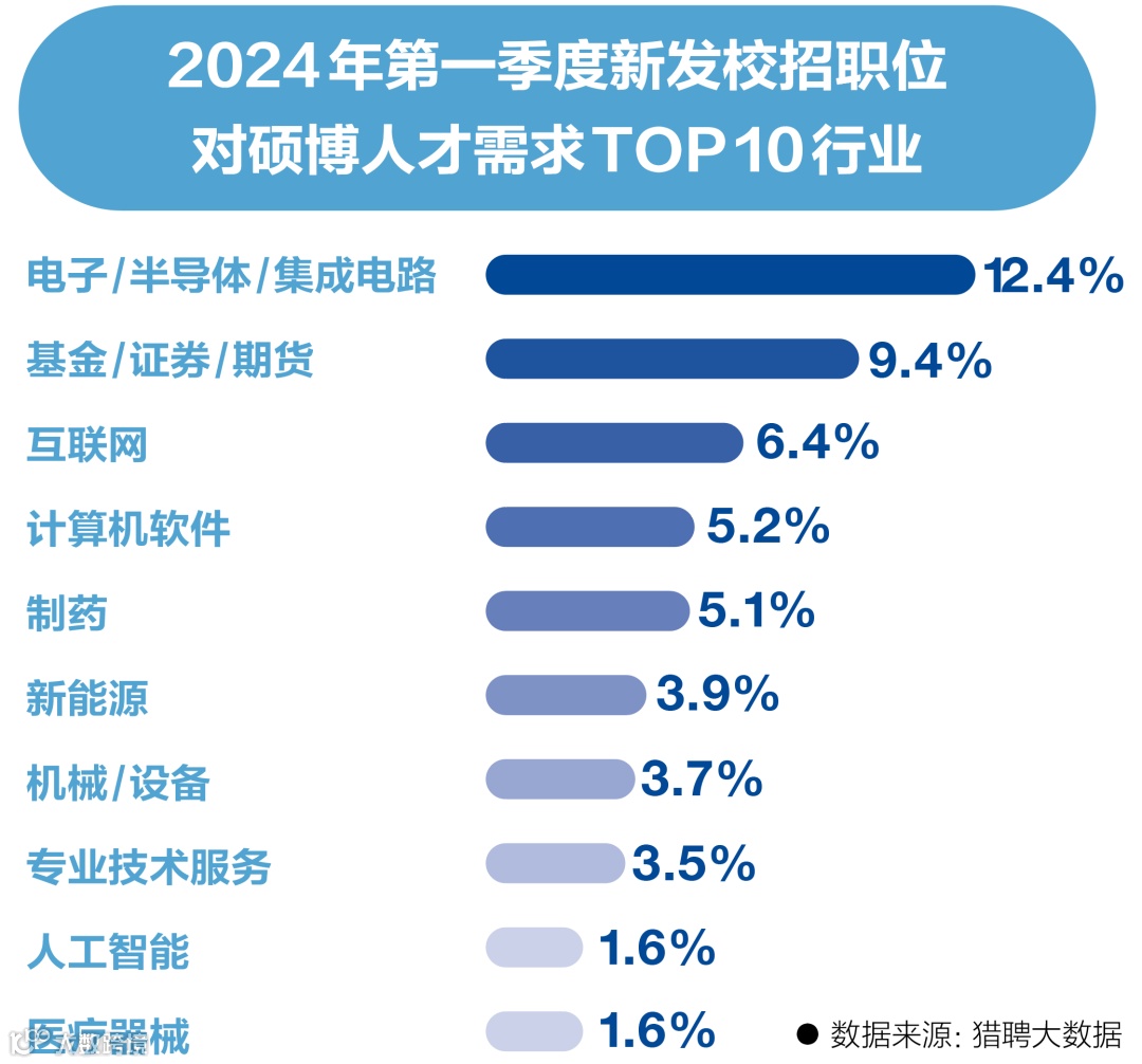 猎聘大数据显示,2024 年第一季度新发校招职位中:电子/半导体/集成电路行业对硕博人才需求占比达 12.4% 居首位,直接推动电子信息工程专业持续成为考研报考人数最多的专业。