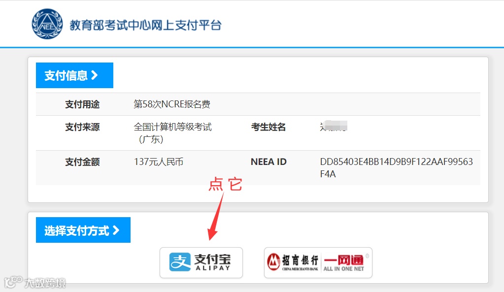 3.网页跳出下图窗口,则选支付宝方式进行支付。