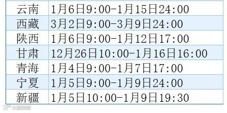 各省市报名时间如下表