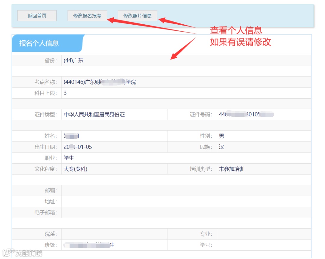 郑重声明:考生报名信息一经确认,不予更改,如报名信息有误,由考生本人负责。