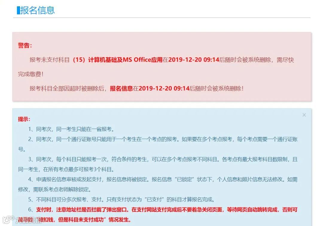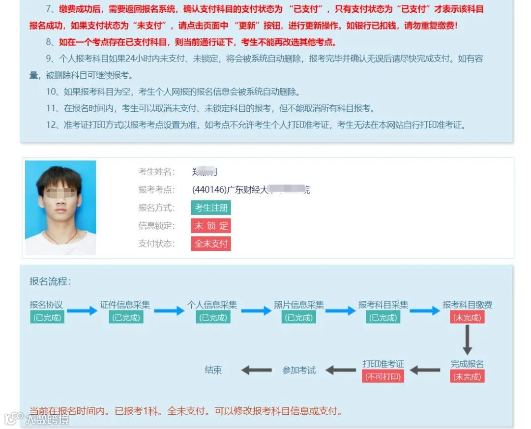 特别说明:如果所报考点设置考生信息需审核的,请你耐心等考点通过审核,并在报名结束之前完成缴费即可,不要忘了。