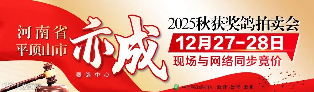 精兵强将已就位,立即参拍抢占先机!12月27日-28日,河南平顶山亦成秋棚将举行2025年获奖鸽颁奖暨拍卖大会,届时还联合中信网开启“现场与网络同步拍卖+视频直播”服务,鸽友们可登录中信网,提前出价拍好鸽,边看直播边竞价,冠军奖鸽带回家!即刻下载中信网手机APP,轻松出价,快人一步!