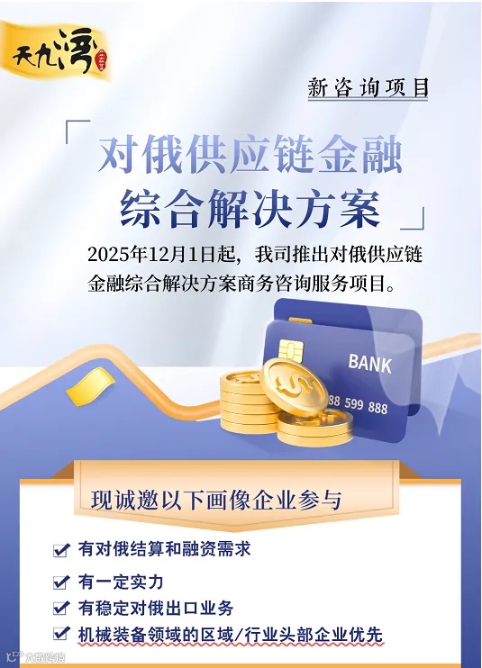 2025年12月1日起,正式推出“对俄供应链金融综合解决方案”商务咨询服务。