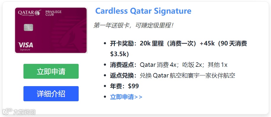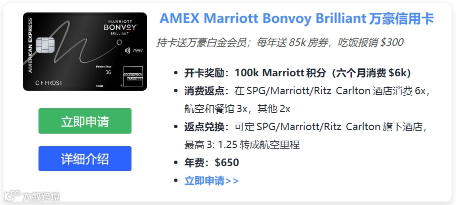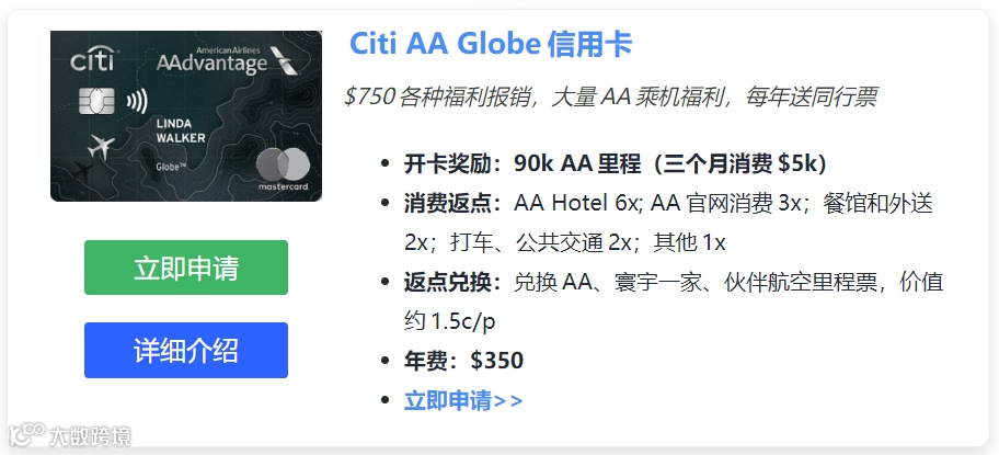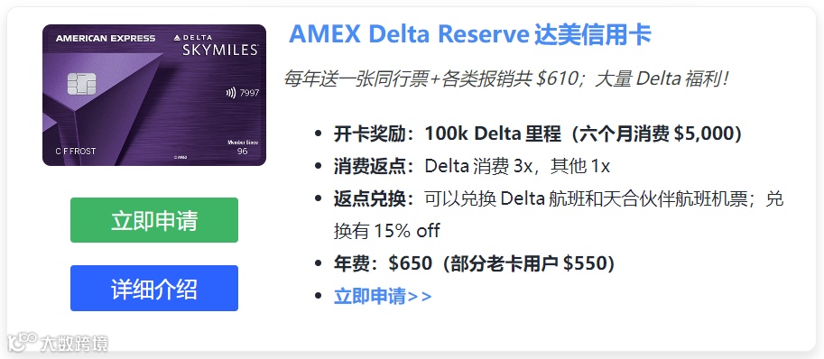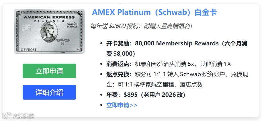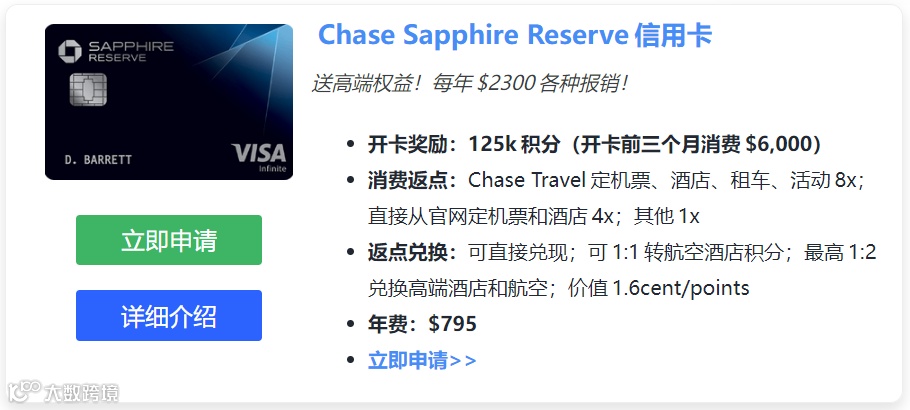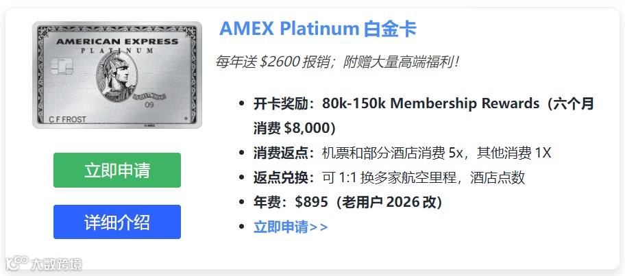 - 改版后福利升级,开卡奖励扣除年费后价值约$500,叠加$300旅行报销更具吸引力