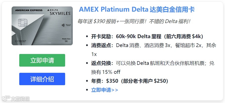 - 若未持有Delta Gold卡,建议优先申请Gold版本以保留未来Platinum申请资格