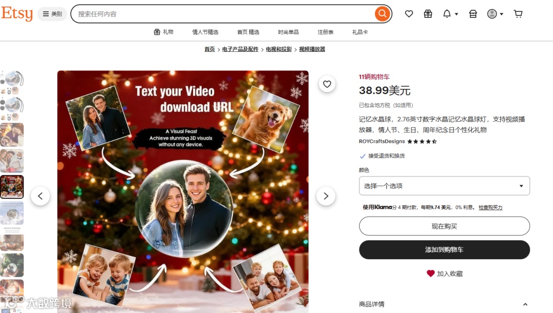 Etsy排斥批量工业品,青睐手工制品、原创设计及复古商品。成功案例中的“记忆水晶球”支持视频播放,适用于情人节、生日等送礼场景;DIY相框剪影盒满足婚礼纪念与家居装饰需求,均属高需求、低竞争的优质品类。