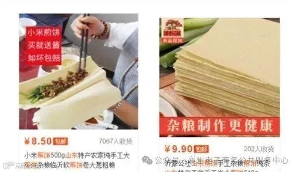 对比“山东煎饼”案例:左侧主图直击赠品利益点,转化更高效;右侧强调“健康”,但文案空泛、缺乏差异化支撑。