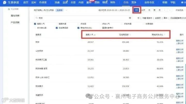 开店前须评估产品竞争力。以“煎饼”为例,可通过生意参谋→市场→搜索词分析,计算关键词竞争度 = 7天搜索人气 ÷ 在线商品数。
