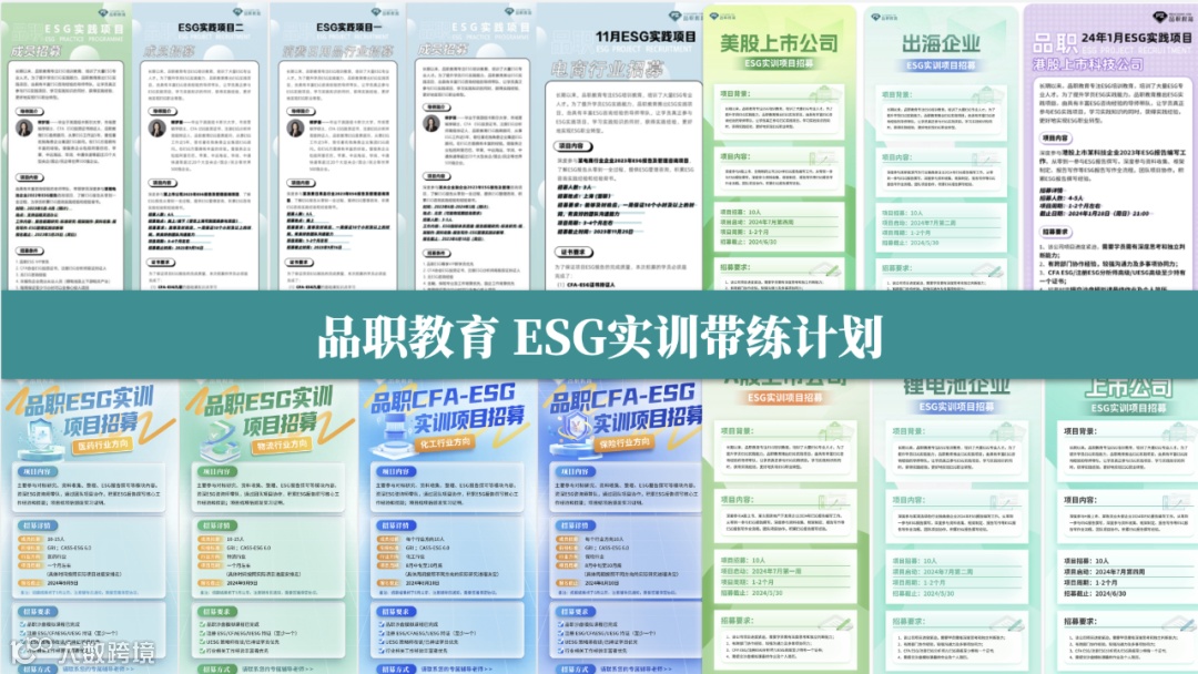 我们推出的ESG实训项目,不仅适合0工作经验的ESG职场小白,更适合未来打算跳槽到ESG得到更好发展的转行人,百大企业,资深带练,免费实习。