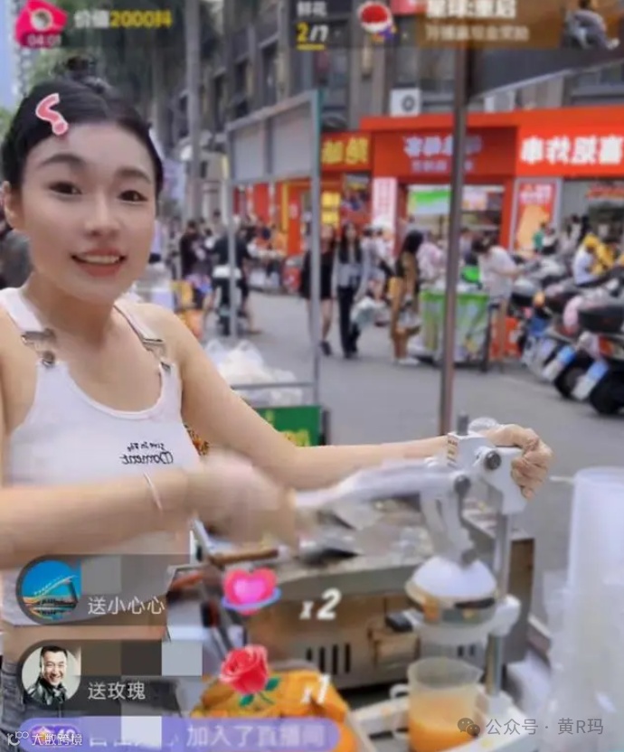 她的商业模式简单直接:通过直播展示如何用铲子制作美食,吸引男性观众的打赏。值得注意的是,她的直播间互动较少,但凭借真实摆摊的画面吸引了大量忠实粉丝。