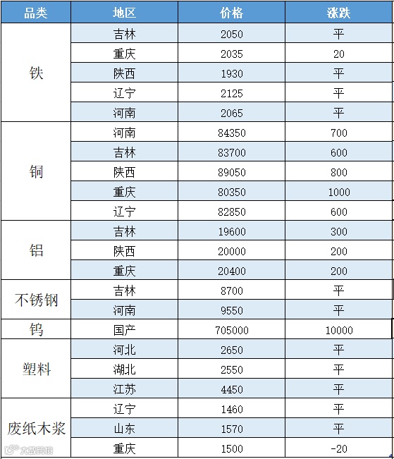宏观方面,铜价触底反弹,废铜价格随行就市。贸易商反馈收货难度较高,持货商对后市仍持看涨态度,市场流通货源稀少。再生铜厂方面,铜厂反馈下游接货热情有所回升,但基于目前成本较高,仍以刚需拿货为主,市场成交清淡。预计短期废铜价格维持高位震荡运行。