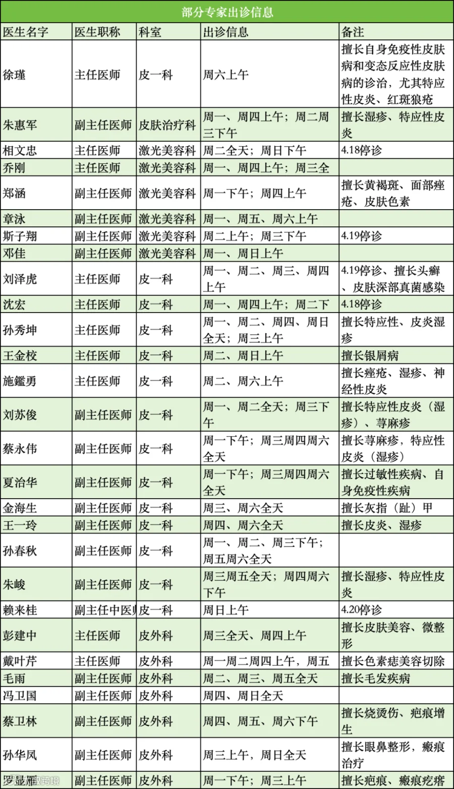 以下是部分专家出诊信息(仅供参考,以实际预约为准)