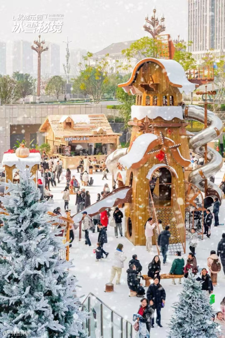 发3张照片并带上#公园天街秋成乐园 和 #秋成乐园冰雪秘境 两个话题