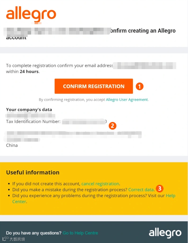 ①邮箱很重要,账户信息提交后,Allegro会发邮件到这个邮箱,24小时内要确认注册。日常的问题沟通,邮件也是最常采用的。部分中国网址的邮箱无法收到邮件,但QQ邮箱是可以的。