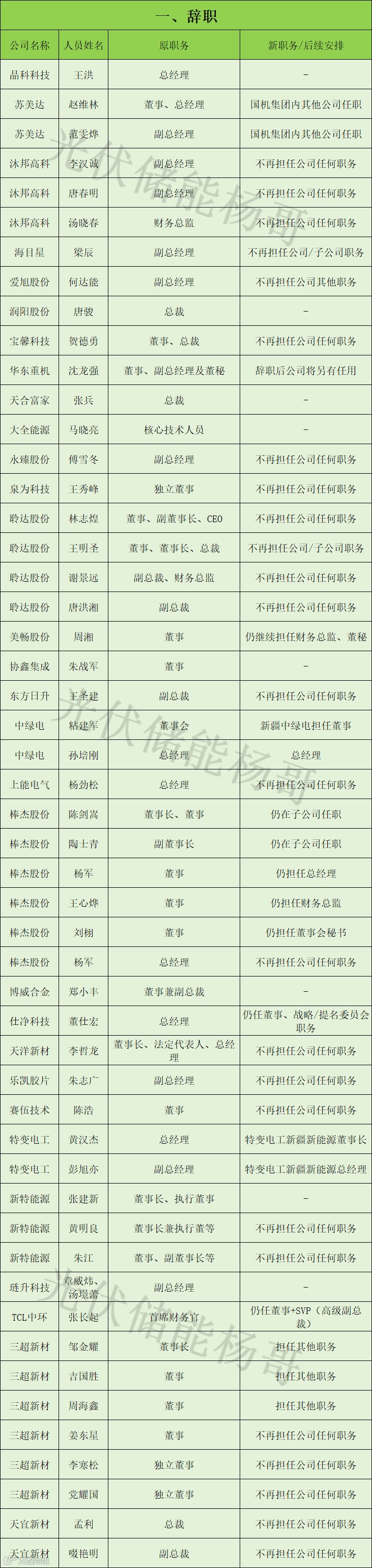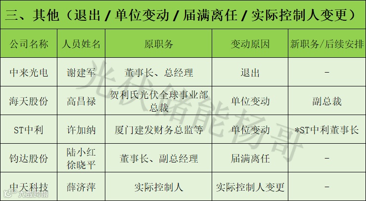 宝馨科技:三年跨界光伏无果,换4任董事长,最终由实控人亲属接棒;华东重机:终止光伏项目后,高薪挖来的光伏高管集体离职;天宜新材:总裁、副总裁相继辞任,核心子公司因需求疲软停产。
