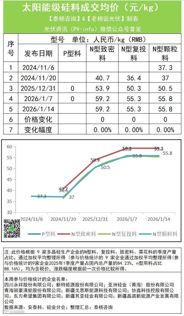 本周多晶硅n型复投料成交价格区间为5.0-6.3万元/吨,成交均价为5.92万元/吨,环比持平。n型颗粒硅成交价格区间为5.0-6.3万元/吨,成交均价为5.58万元/吨,环比持平。