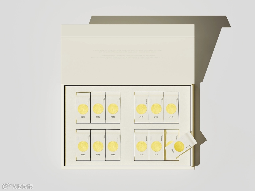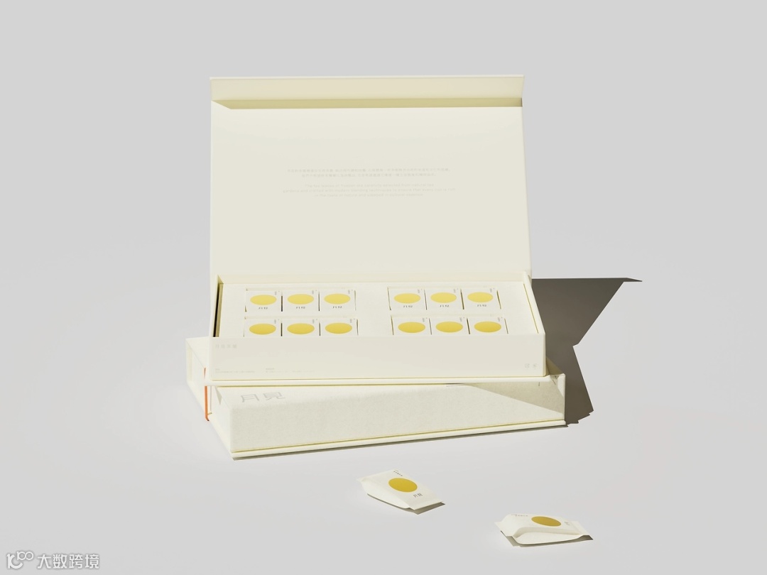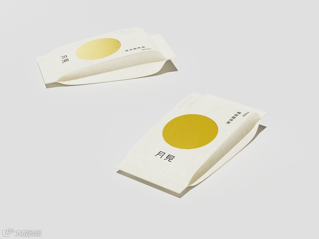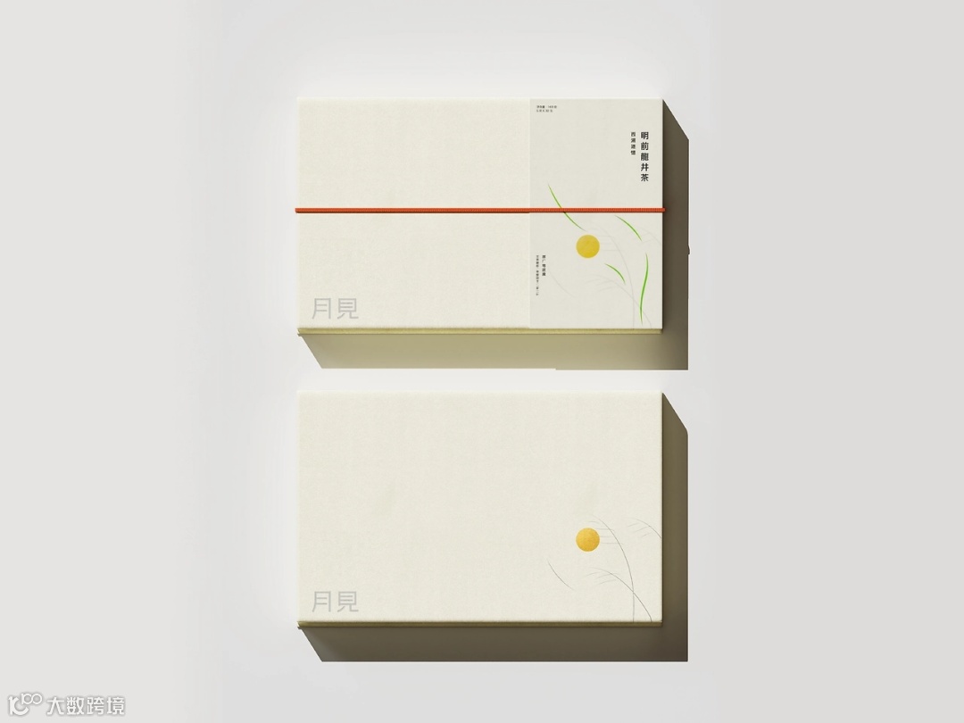 【月见】茶叶包装以“月”为主题,打造节日属性礼盒。外包装使用半透硫酸纸,营造夜幕下的朦胧月光效果,与品牌名呼应。利用材质和光线变化,塑造静谧神秘氛围,减轻包装重量,便于携带,迎合现代消费者需求。