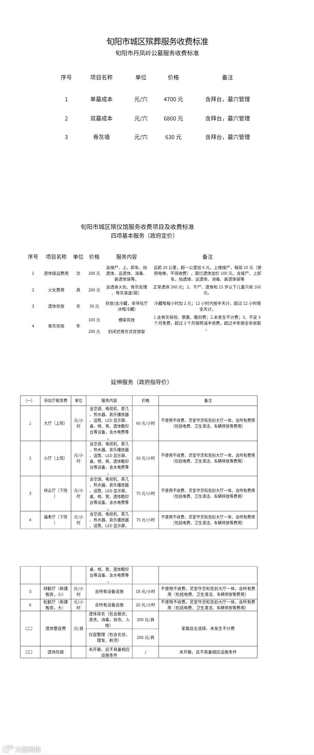 你单位《关于申请对旬阳市殡仪服务收费标准重新核定的报告》(旬民字﹝2024﹞94号)已收悉。为进一步规范旬阳市城区殡葬服务收费工作,依据《中华人民共和国价格法》、《陕西省定价目录》、《陕西省成本监审目录》、陕西省发改委《关于扎实做好殡葬领域服务收费自查自纠工作的通知》、旬纪﹝2024﹞17号《旬阳市整治殡葬领域腐败乱象专项行动的实施方案》等文件精神。按照定价程序,开展殡葬领域成本监审,经过多次会议讨论,广泛征求社会各界意见建议,综合考虑周边县区殡葬服务收费标准,殡葬服务成本,群众承受能力等因素,制定旬阳市殡葬服务收费标准,已提请第四次政府常务会议审议通过,现将我市城区殡葬服务收费标准等事项进一步规范明确如下: