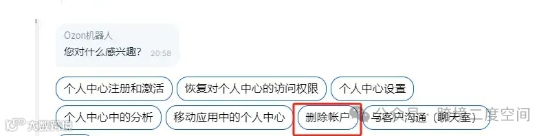 跨境二度空间1. 打开在线客服,进入机器人客服界面后选择“卖家个人中心”→“删除账户”→“如何删除我的帐户?”