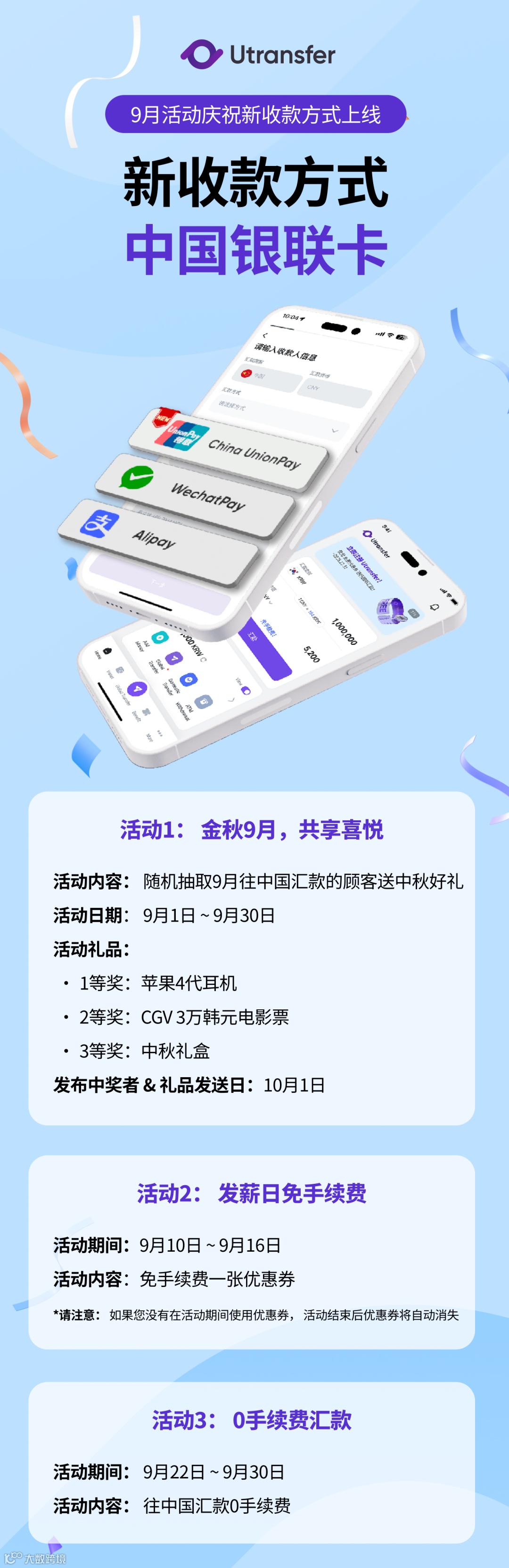 Utransfer九月推出双重福利活动