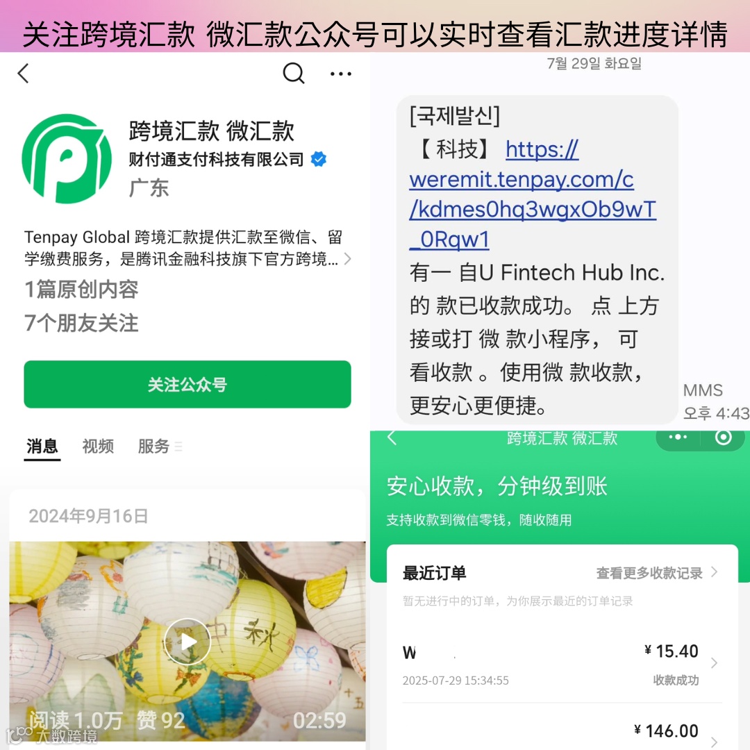 为提升用户汇款体验,Utransfer正式支持微信收款服务。无论身处韩国何地,只需通过微信“微汇款”小程序,即可轻松完成跨境收款。
