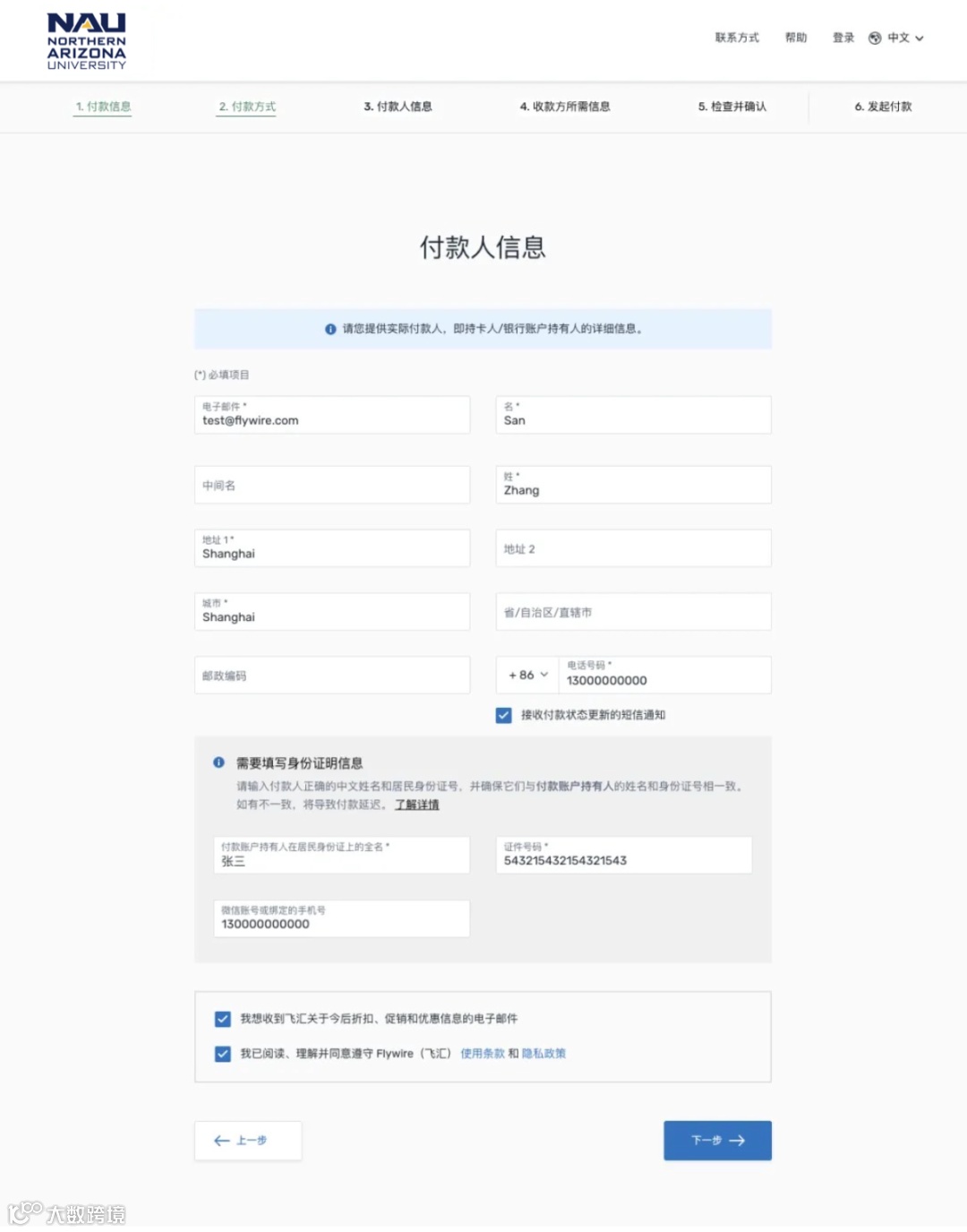 步骤3:填写付款人信息