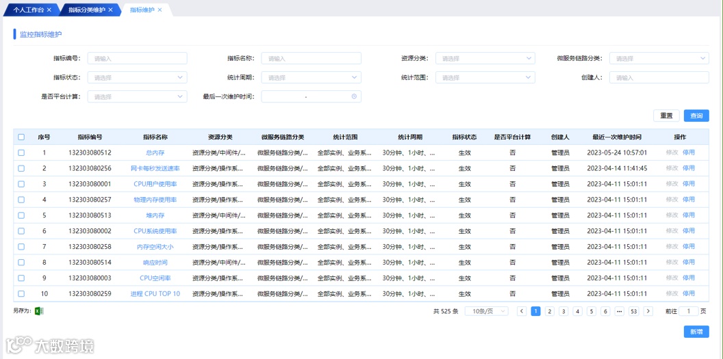 (3)监控指标管理