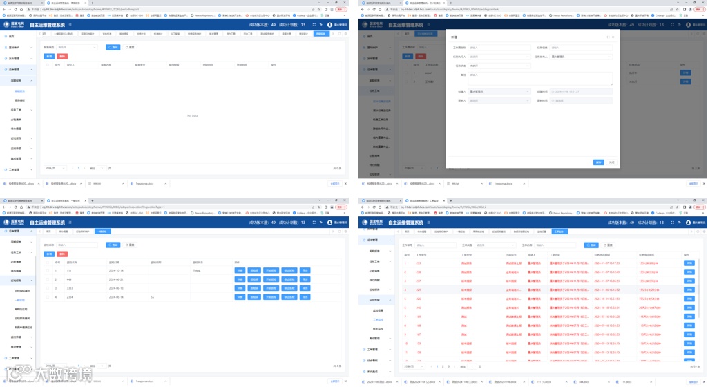 运营运维总体情况概览功能立足运维人员及领导等多维视角,直观展示人员情况、版本情况、检修记录、发布查询、任务统计等信息,下图4为运营运维总体情况概览页面。该模块有效协助领导掌握本省版本发布进度,助力运维管理人员全面把控系统运营运维工作开展情况。