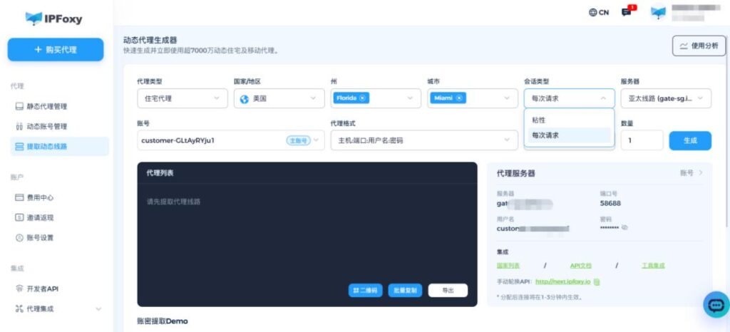 - 使用稳定的IP地址:尽量使用固定的IP地址登录,避免频繁更换IP地址。而IPFoxy恰好能提供真实住宅IP节点,纯净度高,可信度高,不易触发模型平台风控。