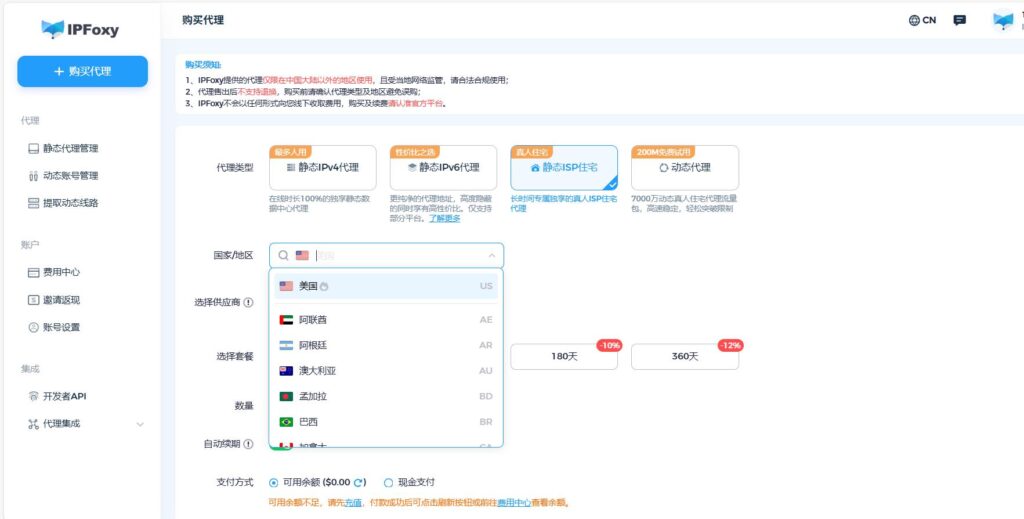 - 合理使用动态IP:模型训练脚本可以搭配动态IP避免单一IP频繁请求导致被ChatGPT限制,需要选择使用像IPFoxy这样的高质动态代理服务,IP池大重复率低,节点稳定、低延迟,能够支持不同区域需求与大量切换。