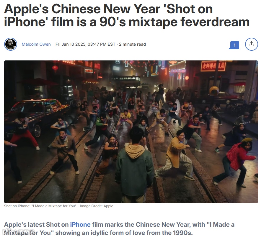 Apple连续多年推出“Shot on iPhone”春节主题短片,2025年作品《I Made a Mixtape for You》以怀旧叙事讲述年轻人返乡故事,将家庭情感与iPhone拍摄功能自然结合,形成固定新年营销IP,强化品牌价值而非直接促销。