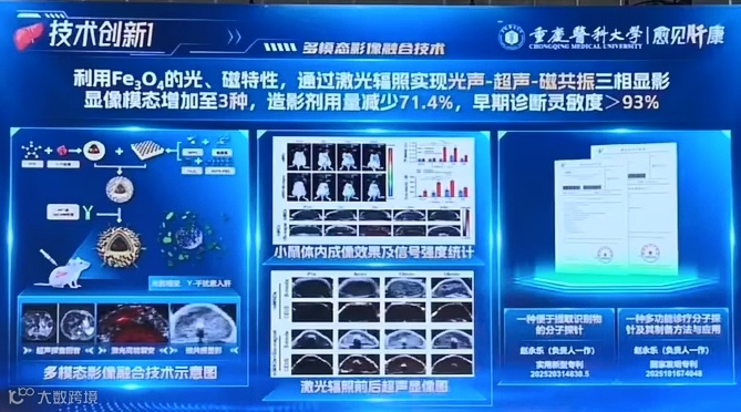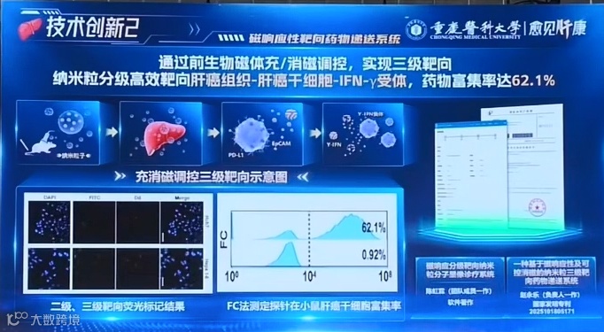 该全国首创技术具备:1.三相显影:病灶显像强度提升4.74倍;2.三级靶向:药物富集率达62.1%;3.三重杀伤:肝癌干细胞清除率69.2%,核心技术已发表于《Theranostics》《Biomaterials Science》等期刊,形成专利壁垒(发明专利5项、实用新型2项、外观专利1项)。探针通过CMA认证急性毒性试验,并与重庆太极实业、植恩健康集团达成战略合作。该项目获郑元义等行业专家认可,被华龙网等主流媒体报道。该项目突破肝癌早诊早治技术瓶颈,为提升我国肿瘤诊疗水平提供创新解决方案。