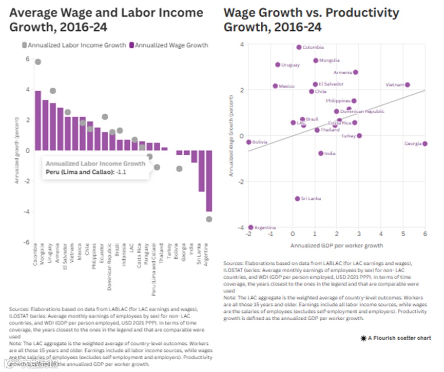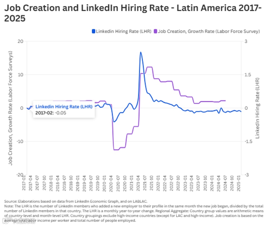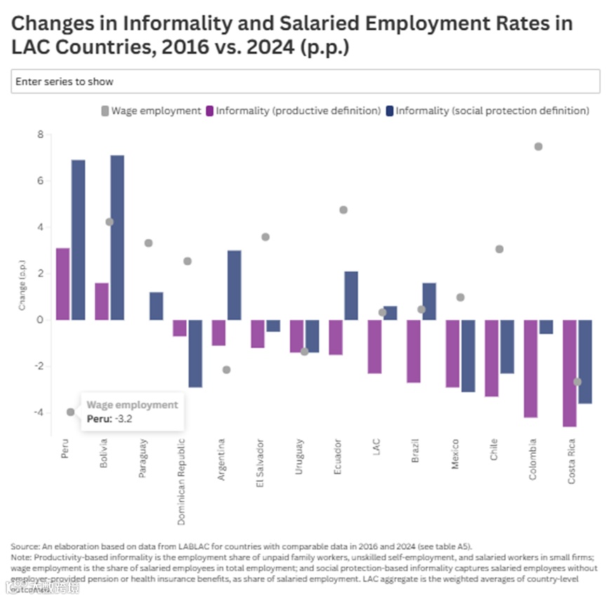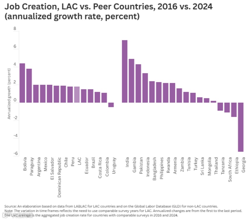 - 尽管2015年以来拉美经济增速全球最低,但就业增长与其他地区持平,表明就业扩张未伴随生产力提升,导致就业质量长期偏低。