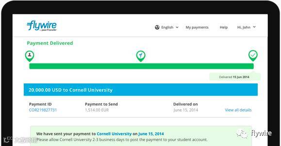 完成付款后,应保留银行凭证以备查证。使用飞汇(Flywire)可通过邮件或登录账户实时查看支付进度,并在款项到账后下载官方收据。