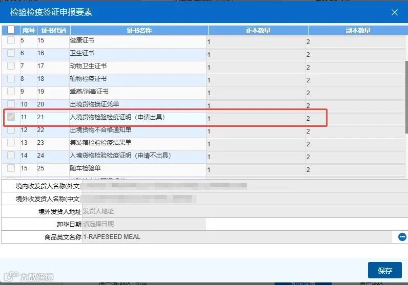进口菜籽粕需提供以下单证: