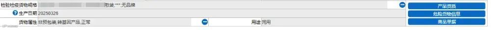 需出证的货物,应在检验检疫规格栏填写境外生产企业名称、包装规格、品牌及生产批次,并根据标签注明生产日期,用途标注为“饲用”。