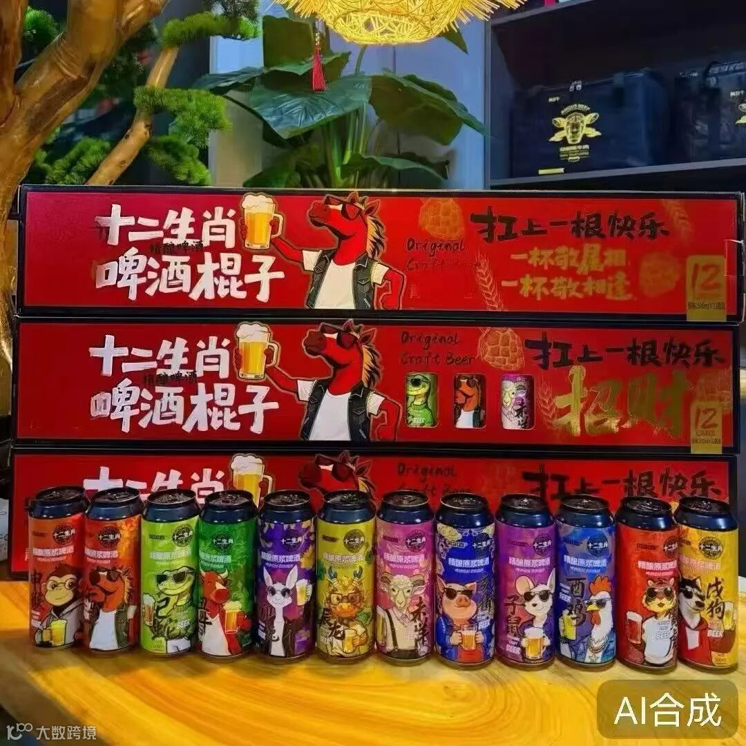 新品到货🔥超级合适❗12个生肖12瓶酒🔥整箱35元💰到手12瓶❗️❗️【十二生肖啤酒棍子】“