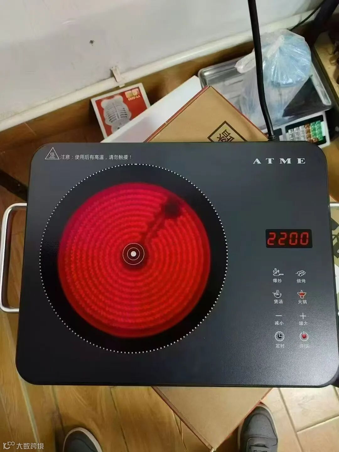 ATME超薄电陶炉 采用全黑晶面板触摸 国标大功率2200W 3小时自由定时 轻松烹饪 带高温hot提醒 4D防水设计 双层包装现货230台