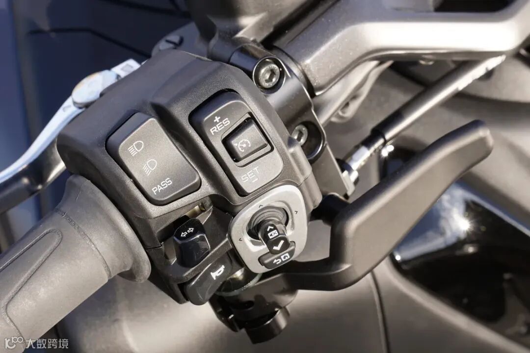 ▲定速巡航设定短按为增减1km/h,长按为每10km/h增减。手柄即便戴手套操作感也良好。下方拨杆为手刹车。