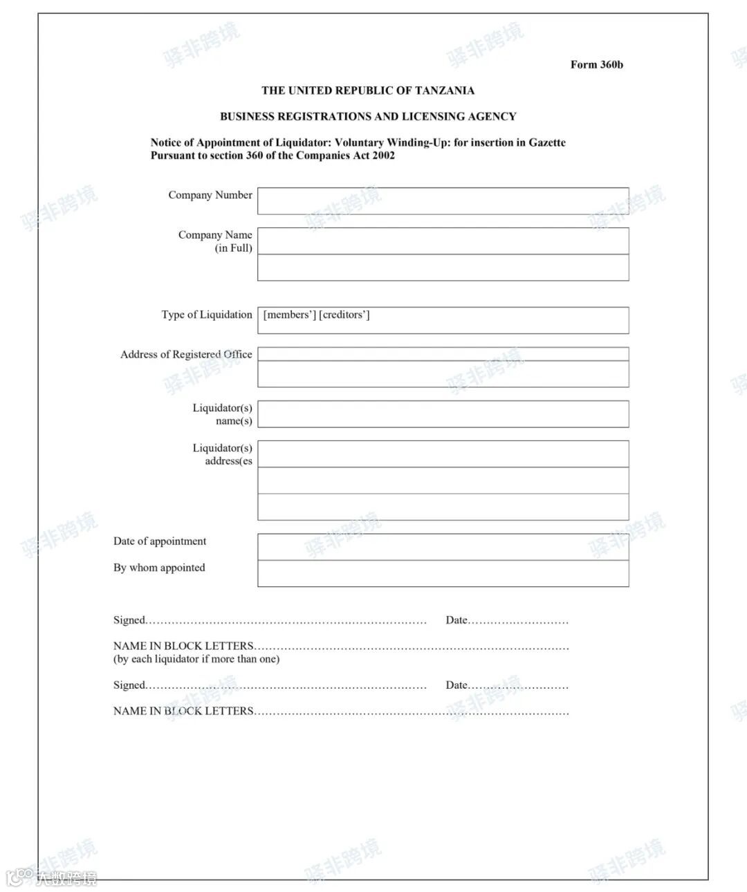 4.获委任的清算人应在委任后14天内准备任命通知(表格360a)并提交给BRELA,表格参考如下: